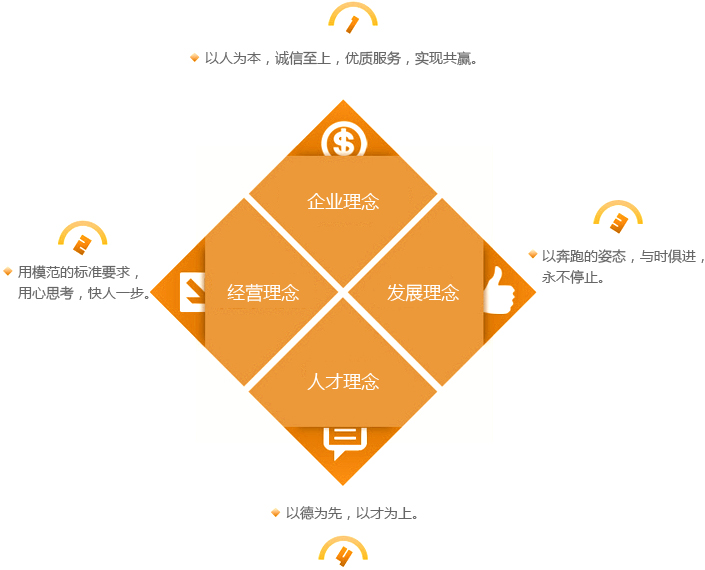 回報(bào)社會、構(gòu)筑和諧。服務(wù)人民大眾,振興民族經(jīng)濟(jì);質(zhì)量是企業(yè)的生命;顧客是完美的衣食父母;遵守國家法律,弘揚(yáng)法制精神,伸張社會正義,爭做守法公民;爭創(chuàng)效益,回報(bào)社會;以人為本,以才興企,廣納賢才。